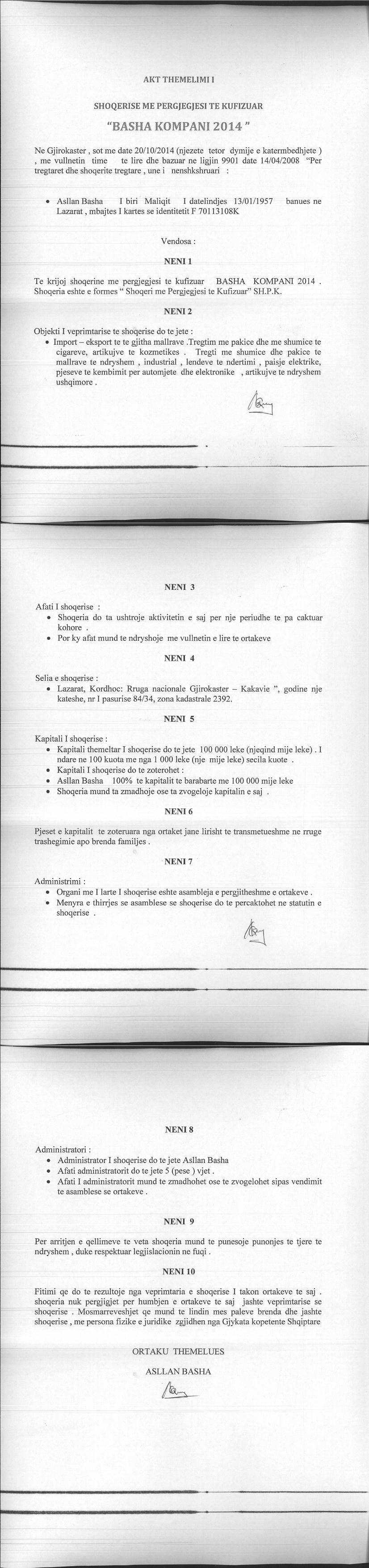 | Emërtime të tjera Tregtare: | BASHA KOMPANI 2014 |