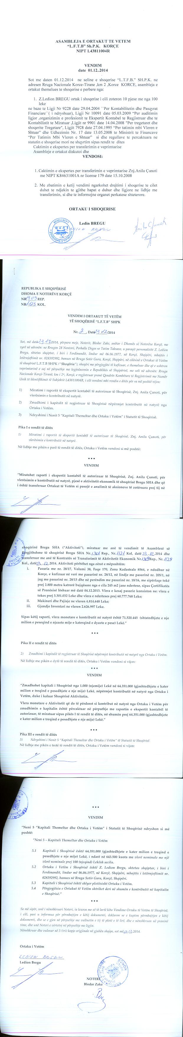 → Ekstrakti Historik i Regjistrit Tregtar date 14.01.2022 → Statuti i Shoqerise → Vendim i ortakut te vetëm te shoqërisë date 23.12.2014 |
