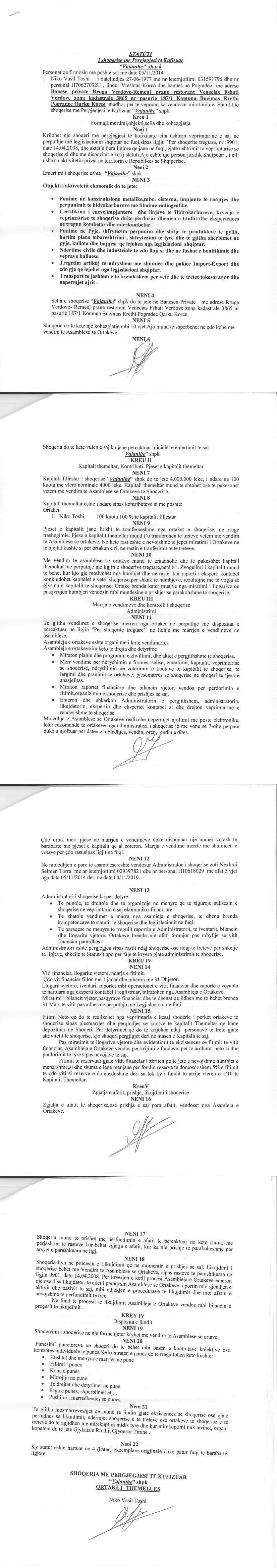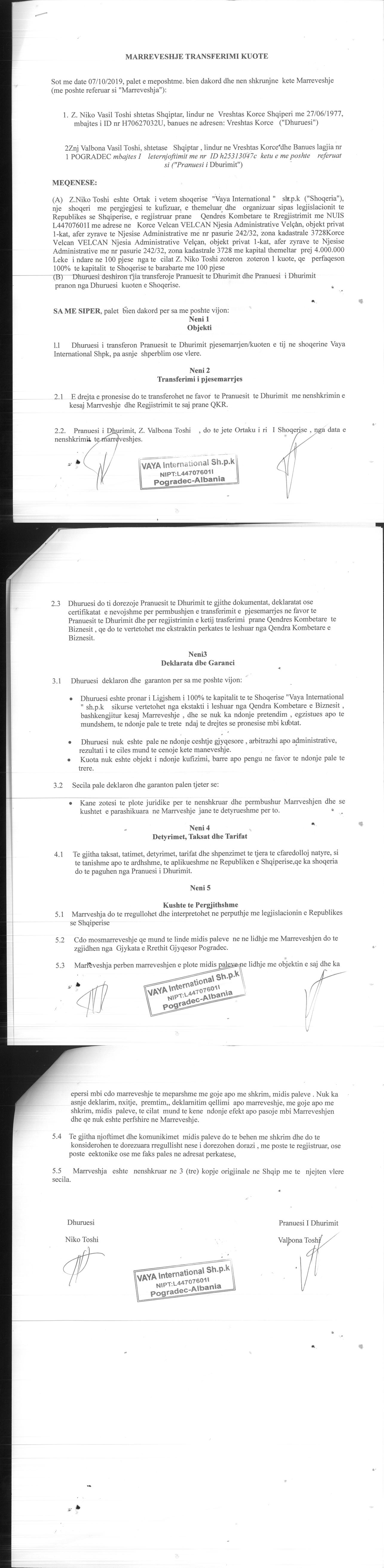 → Ekstrakti Historik i Regjistrit Tregtar date 28.09.2021 → Statuti i Shoqerise → Marreveshje e transferimit te Kuotave date 07.10.2019 → Marreveshje e transferimit te Kuotave date 14.09.2020 → Ekstrakt Historik i Regjistrit Tregtar date 17.04.2024 → Të dhënat e Investimit, Financimet Nga IPARD - Aksesuar nga Agjencia për Zhvillim Bujqësor dhe Rural AZHBR datë 17.04.2024 |