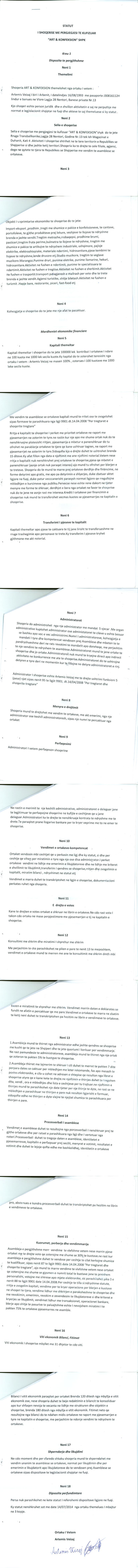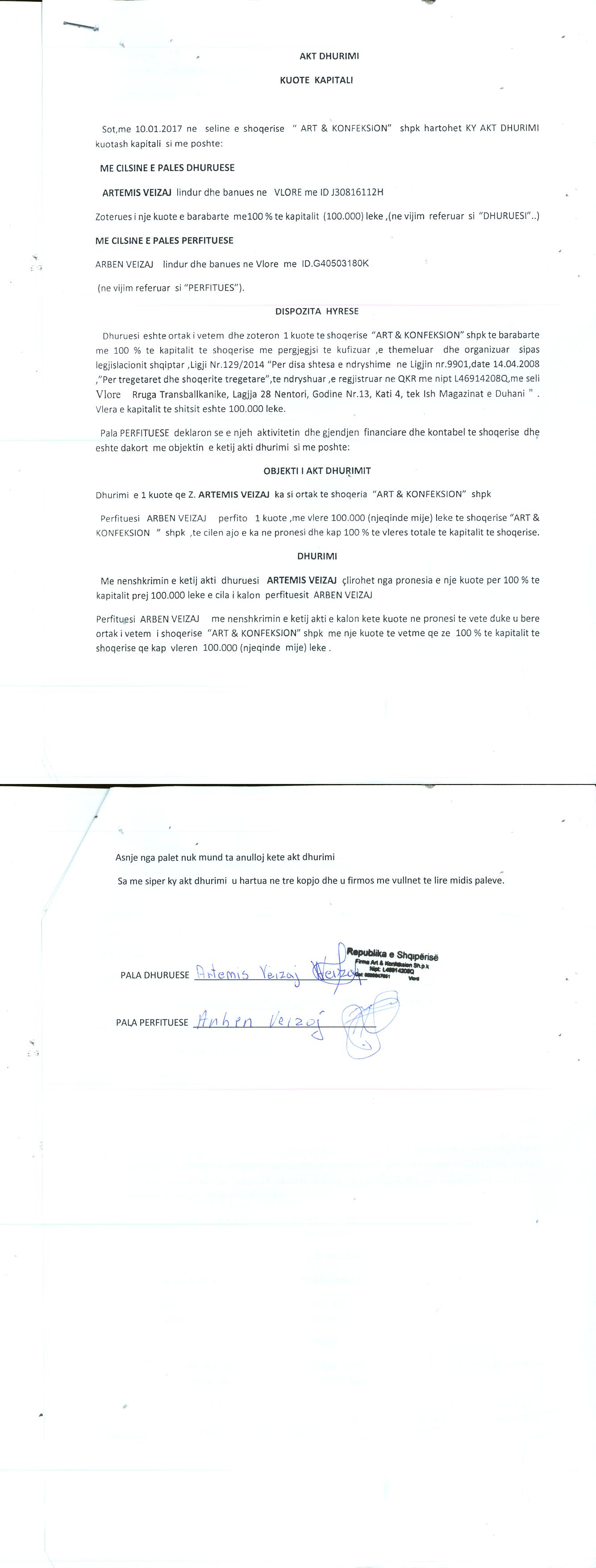 → Ekstrakti Historik i Regjistrit Tregtar date 06.01.2022 → Statuti i Shoqerise → Kontrate e Dhurimit te Kuotave date 10.01.2017 |