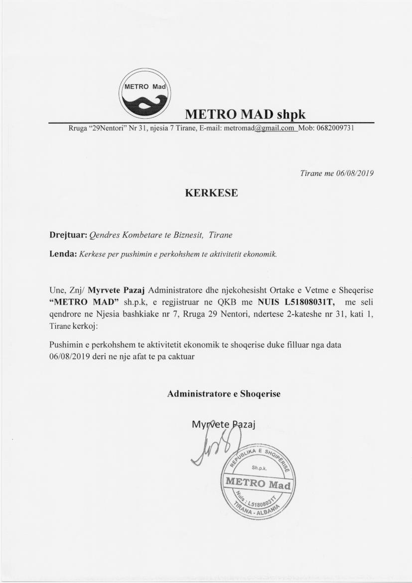 | Emërtime të tjera Tregtare: | METRO MAD |