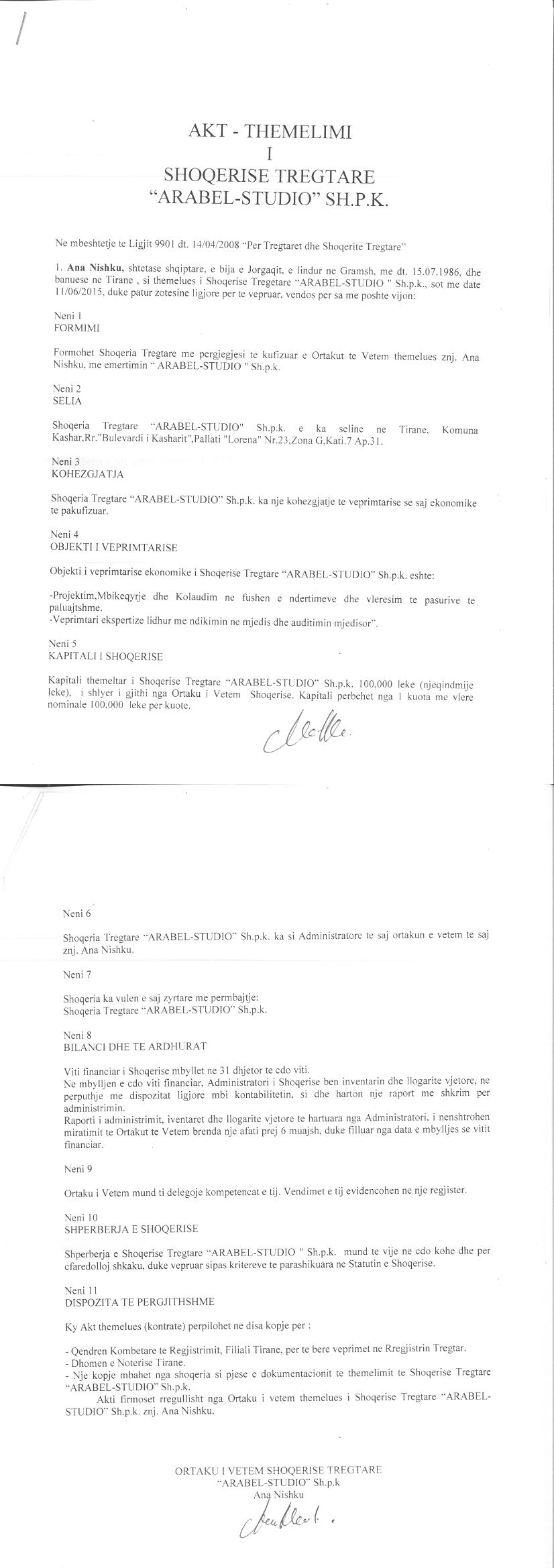 → Ekstrakt historik i regjistrit tregtar 26.07.2021 → Akti i themelimit → Ekstrakti Historik i Regjistrit Tregtar date 08.05.2023 → Ekstrakt Historik i Regjistrit Tregtar date 26.02.2024 → Ekstrakt Historik i Regjistrit Tregtar date 09.12.2024 |