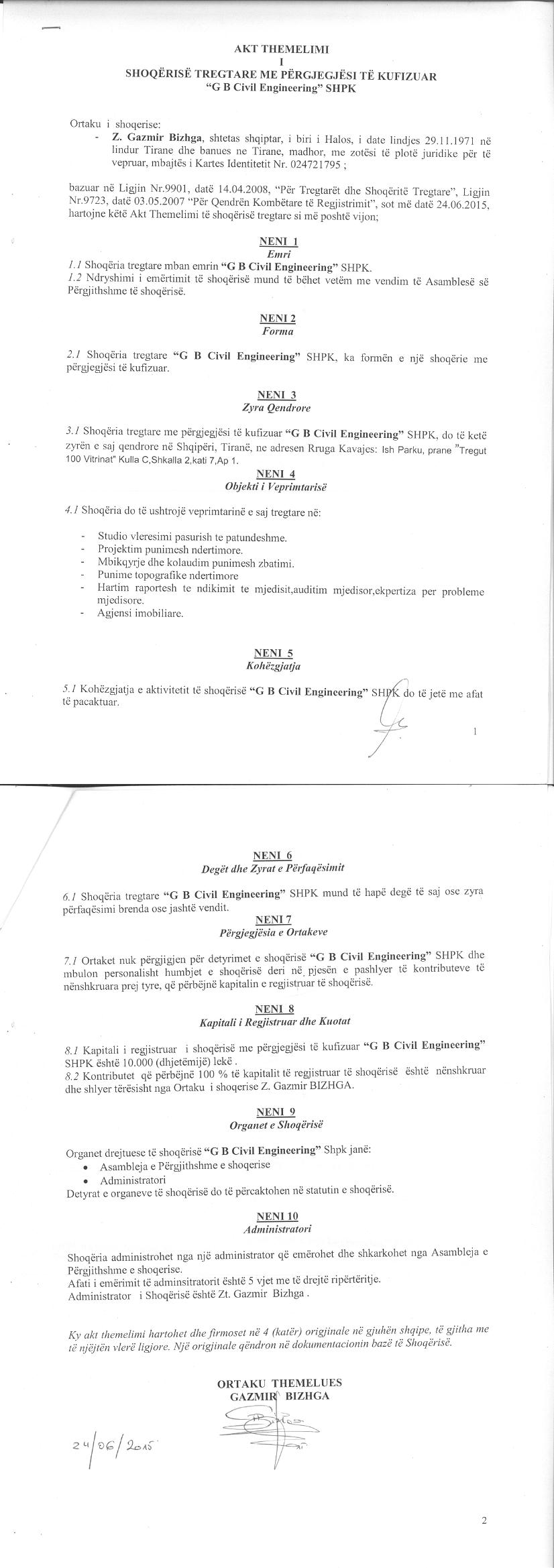 | Emërtime të tjera Tregtare: | G B Civil Engineering |