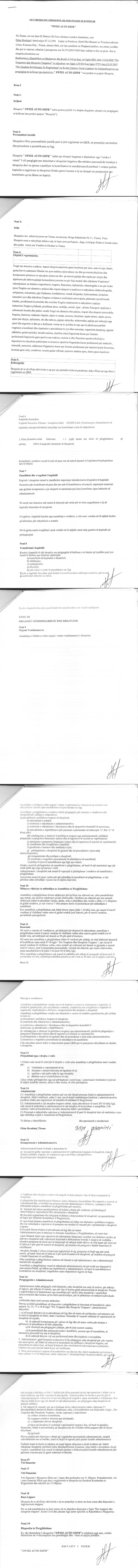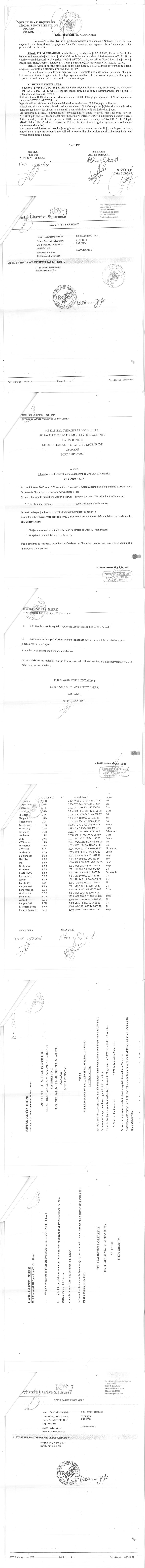 → Ekstrakti Historik i Regjistrit Tregtar date 31.01.2023 → Akt themelimi i Shoqerise → Kontrate Shitje Kuotash date 02.09.2016 → Ekstrakt historik i regjistrit tregtar date 20.09.2025 |