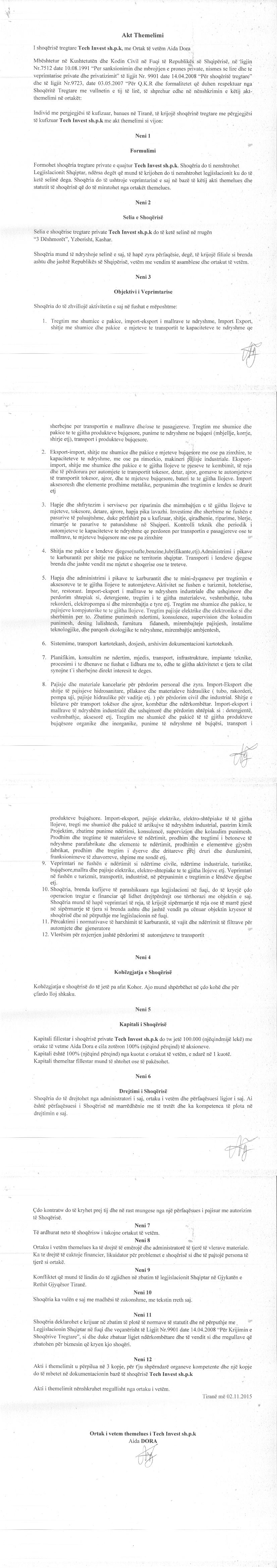 → Ekstrakt historik i regjistrit tregtar date 18.11.2021 → Akti i themelimit → Kontrate shitje e kuotave te kapitalit date 21.08.2017 |