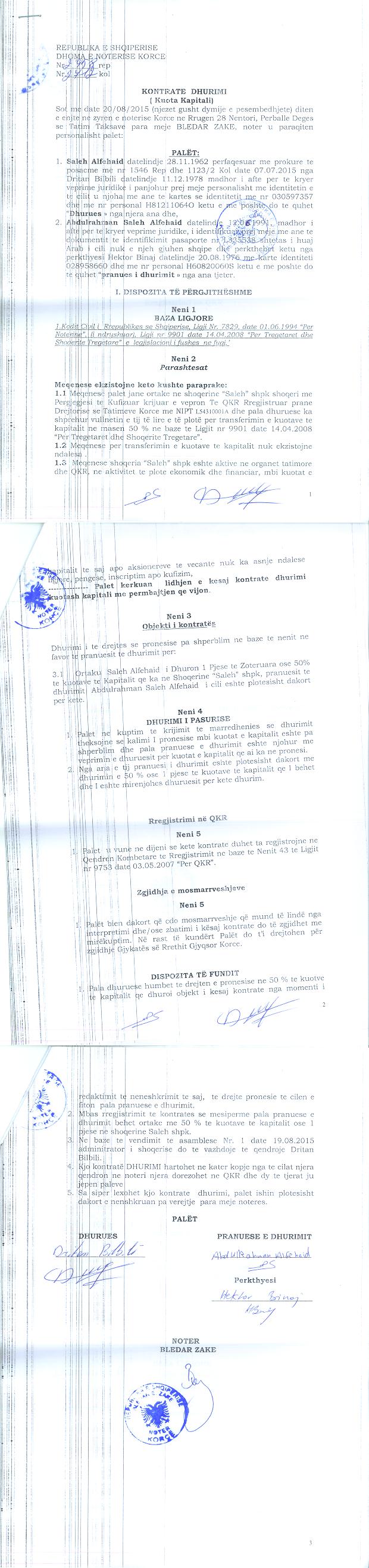 → Ekstrakt Historik i Regjistrit Tregtar date 16.10.2023 → Statuti i Shoqerise → Kontratë Dhurimi datë 20.08.2015 → Ekstrakt Historik i Regjistrit te Pronareve Perfitues date 16.10.2023 → Ekstrakt Historik i Regjistrit Tregtar date 17.04.2024 → Të dhënat e Investimit, Financimet Nga IPARD - Aksesuar nga Agjencia për Zhvillim Bujqësor dhe Rural AZHBR datë 17.04.2024 |