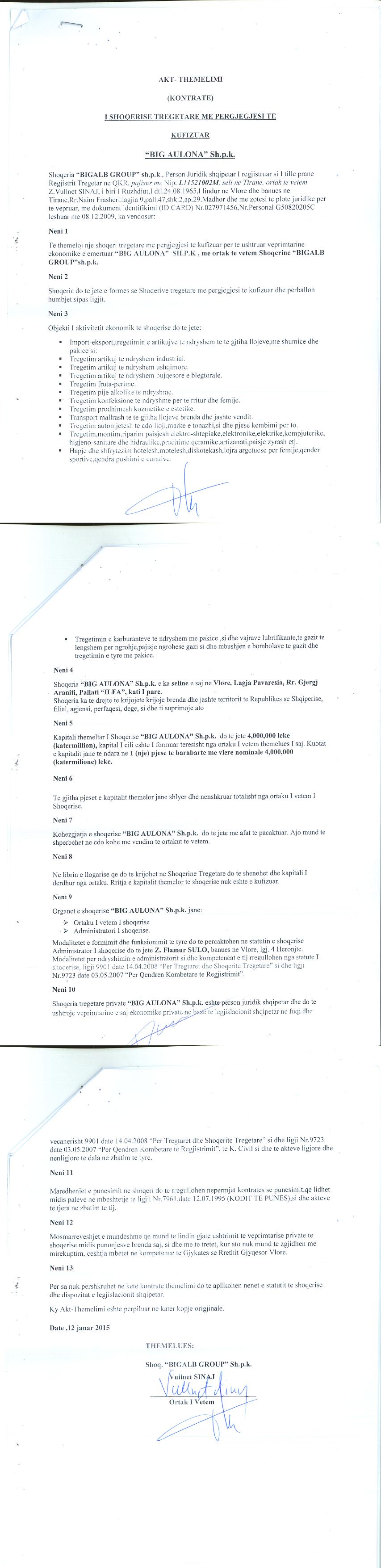 | Emërtime të tjera Tregtare: | BIG AULONA SHPK |