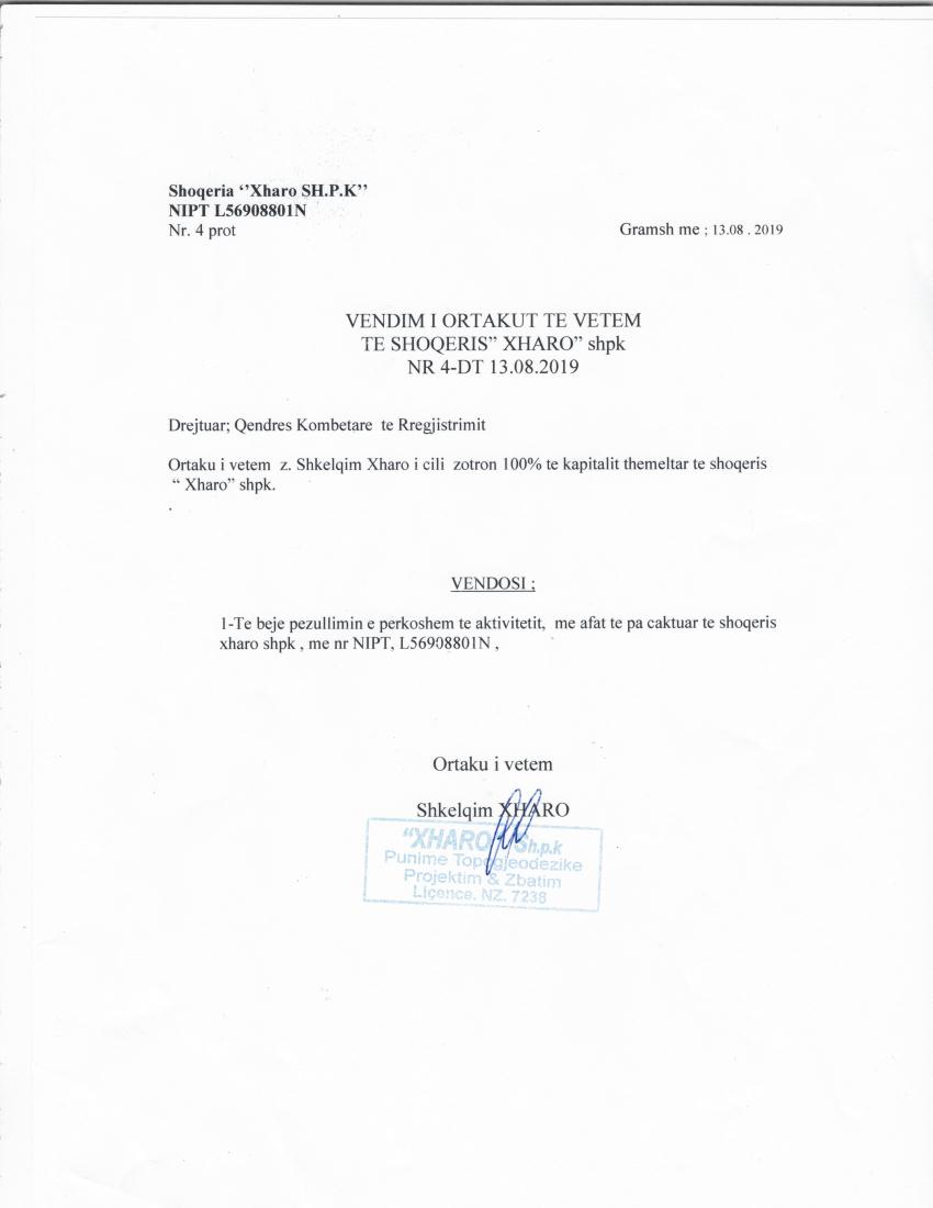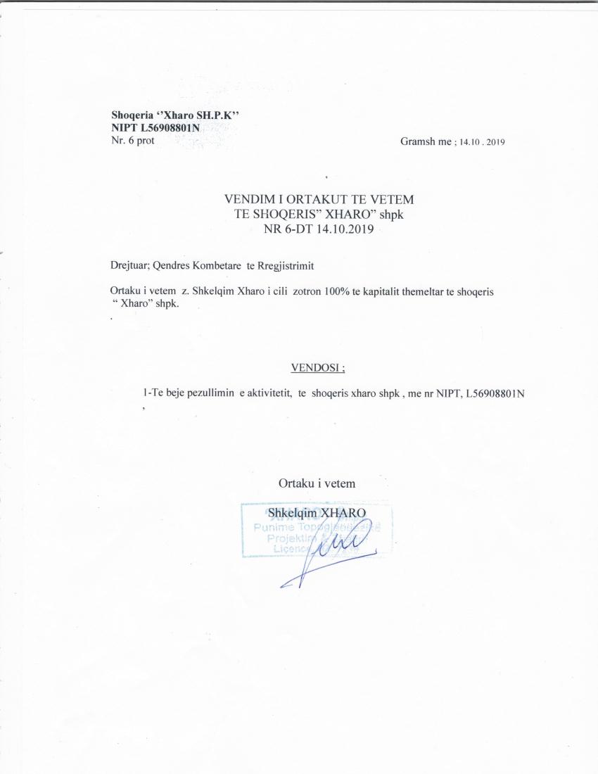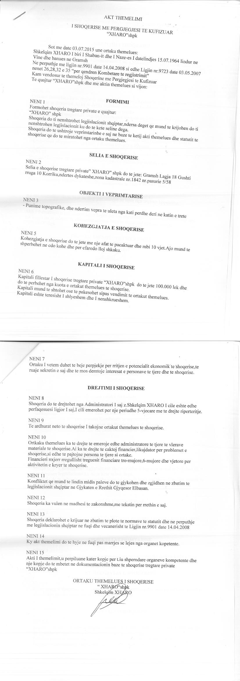 | Emërtime të tjera Tregtare: | "XHARO"shpk |