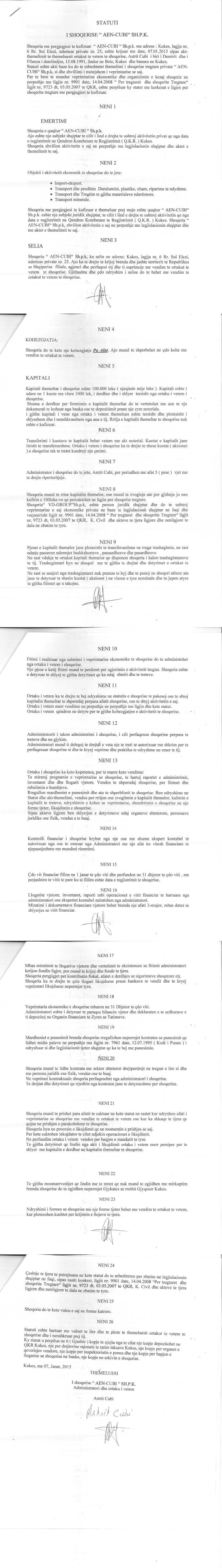 → Ekstrakti Historik i Regjistrit Tregtar date 31.07.2024 → Statuti i Shoqerise |
