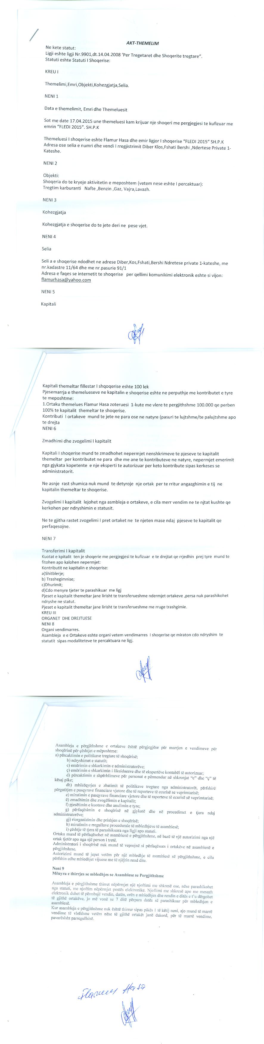 | Emërtime të tjera Tregtare: | "FLEDI 2015" shpk |