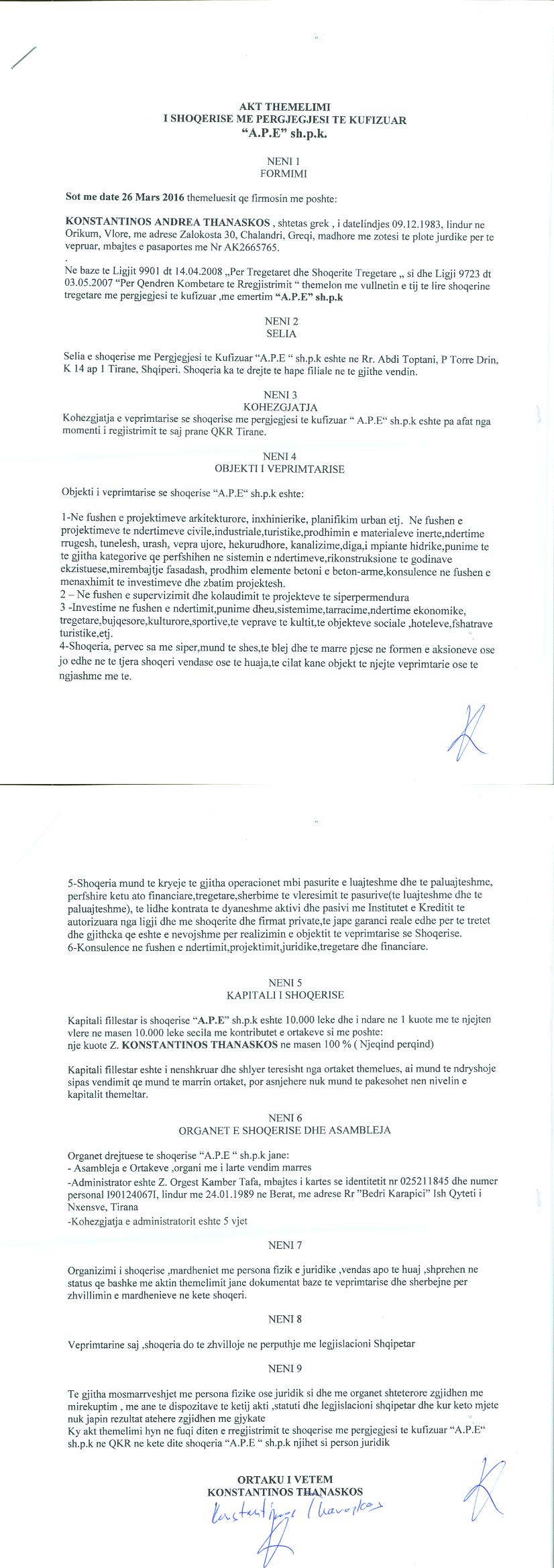 → Ekstrakt Historik i Regjistrit Tregtar date 22.07.2024 → Akt themelimi i Shoqerise → Kontratë për Shitje Kuote datë 09.10.2019 → Ekstrakt Historik i Regjistrit te Pronareve Perfitues date 22.07.2024 |
