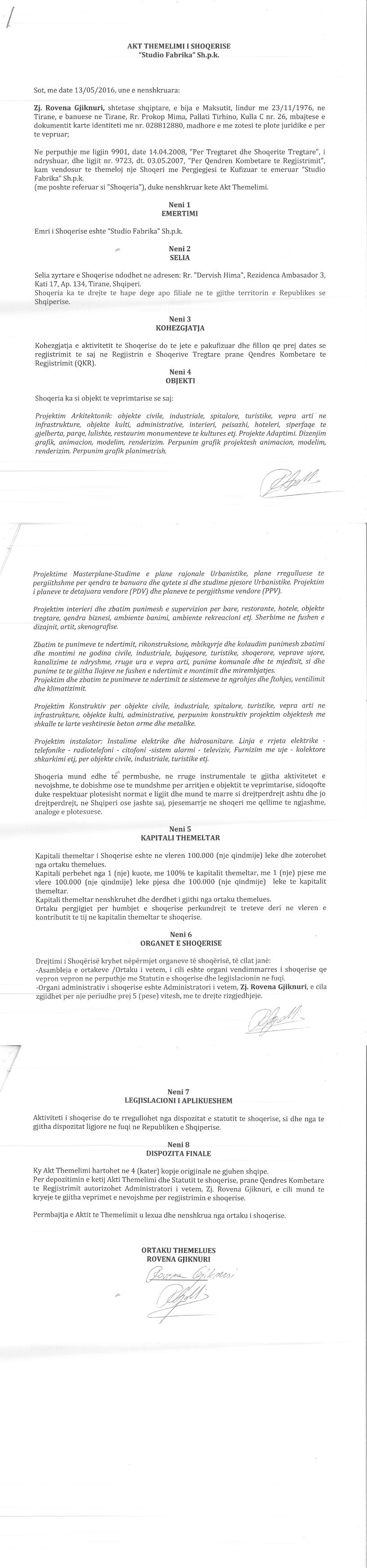 | Emërtime të tjera Tregtare: | Studio Fabrika |