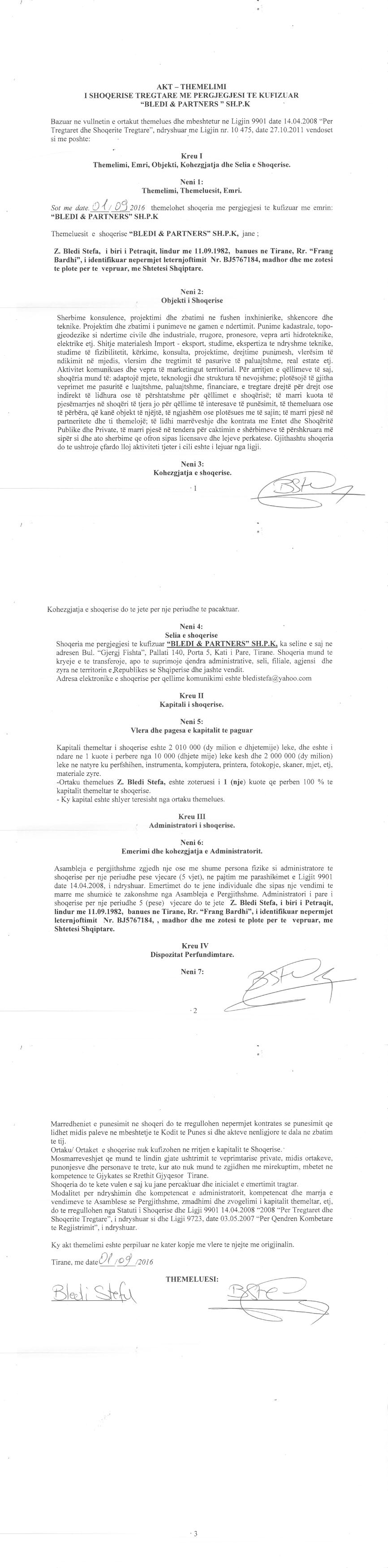 | Emërtime të tjera Tregtare: | BLEDI & PARTNERS |
