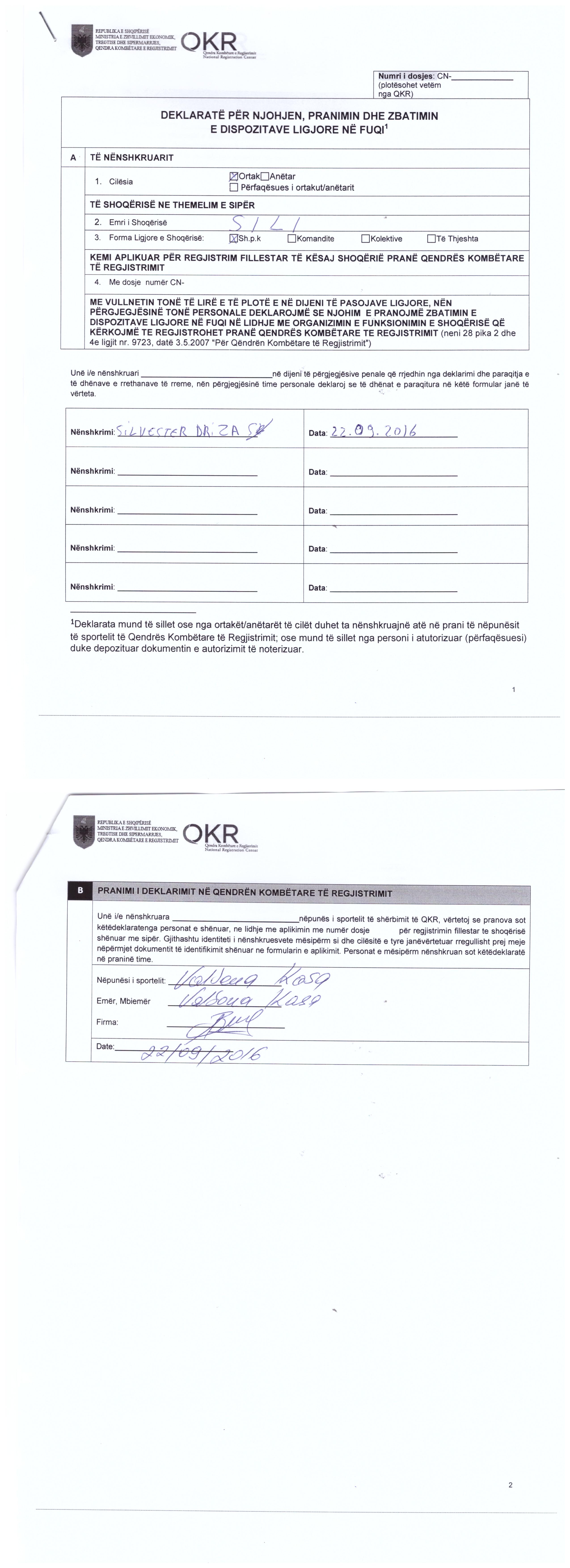 protokolluar nga QKB me Nr. 8244 Prot., date 29.03.2022, leshuar Drejtoria e