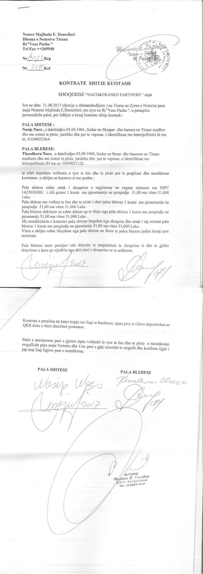 | Emërtime të tjera Tregtare: | NAÇO & FRANKO PARTNERS |
