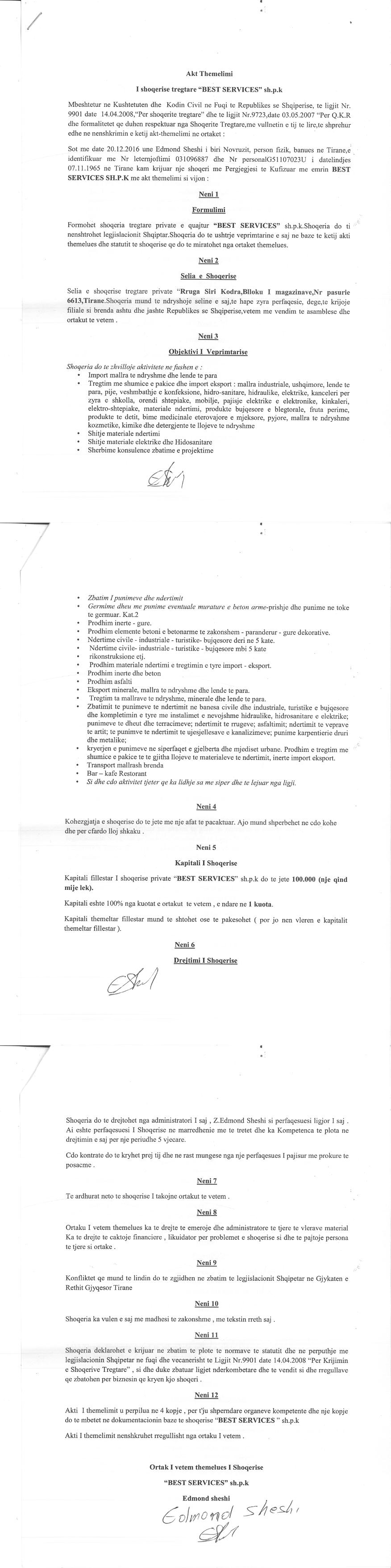 | Emërtime të tjera Tregtare: | BEST SERVICES |