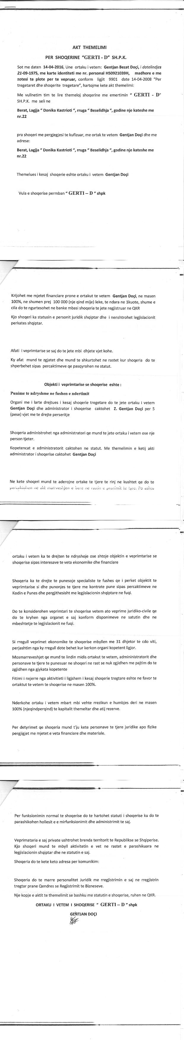 | Objekti i Veprimtarisë: | Punime të ndryshme në fushën e ndërtimit. Tregti me pakicë materiale të ndryshme ndërtimi. Përpunim llamarine. Grumbullim skrapi. |