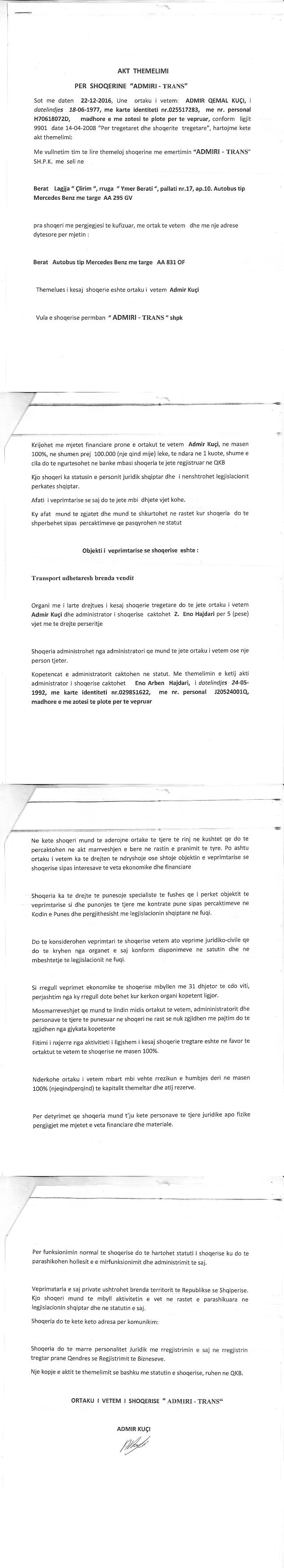 | Emërtime të tjera Tregtare: | ADMIRI - TRANS |