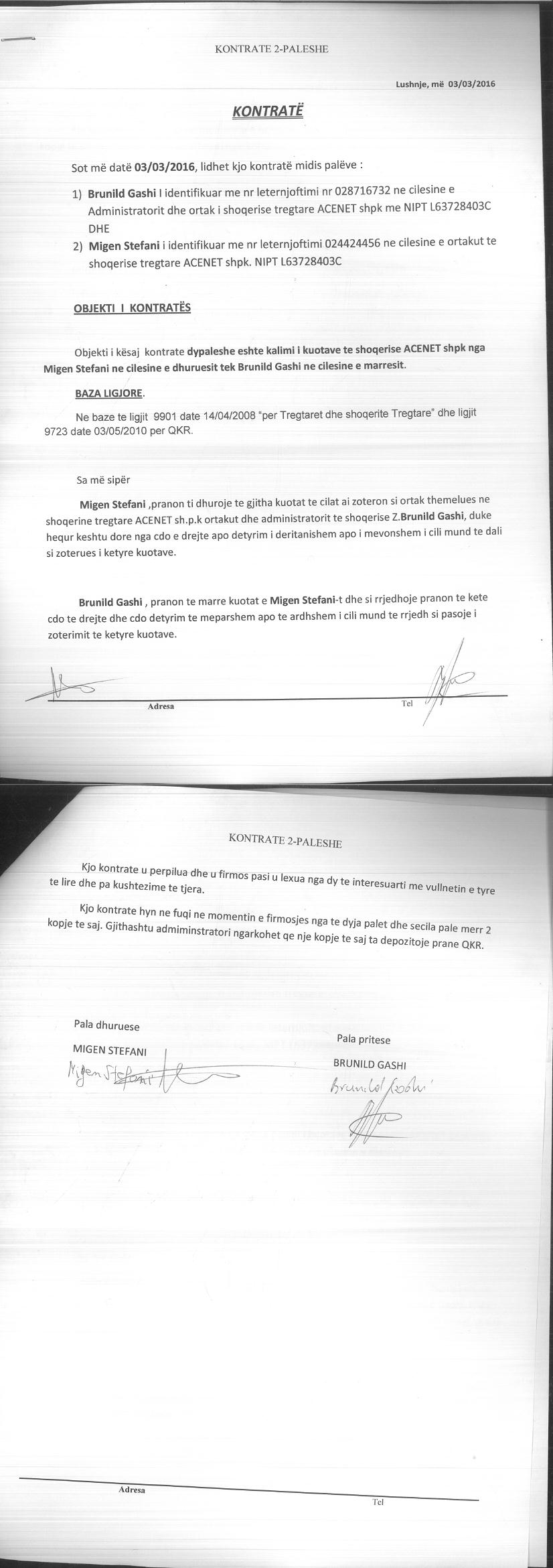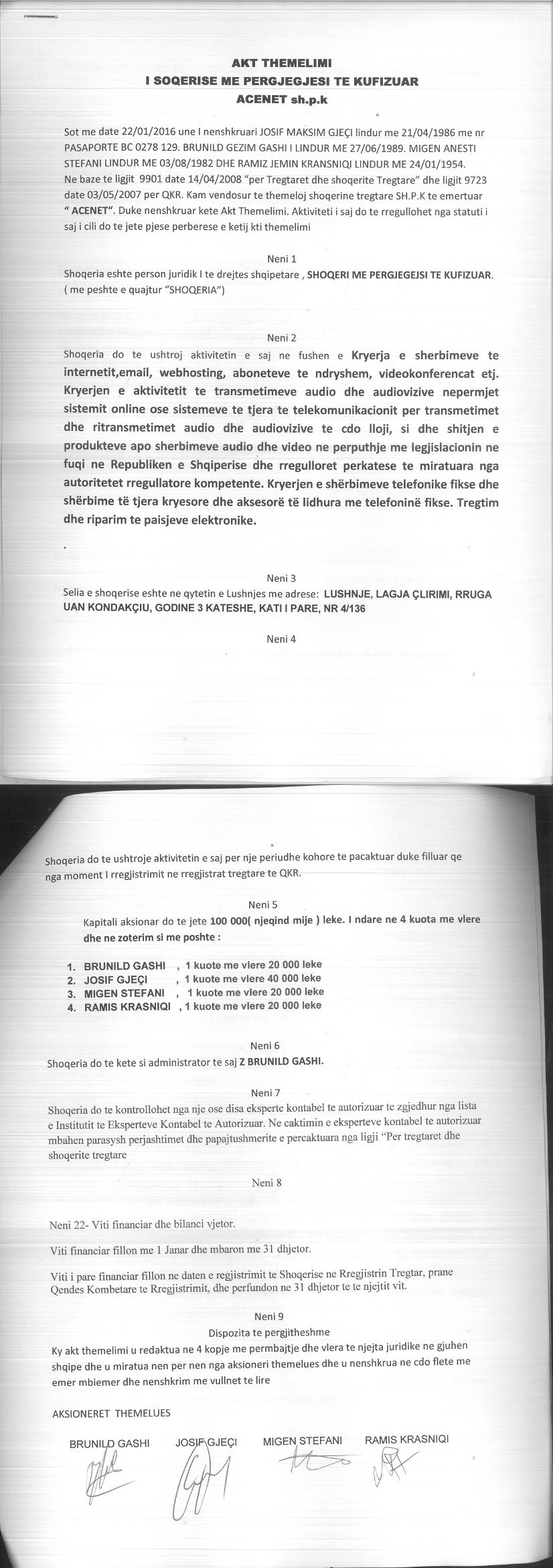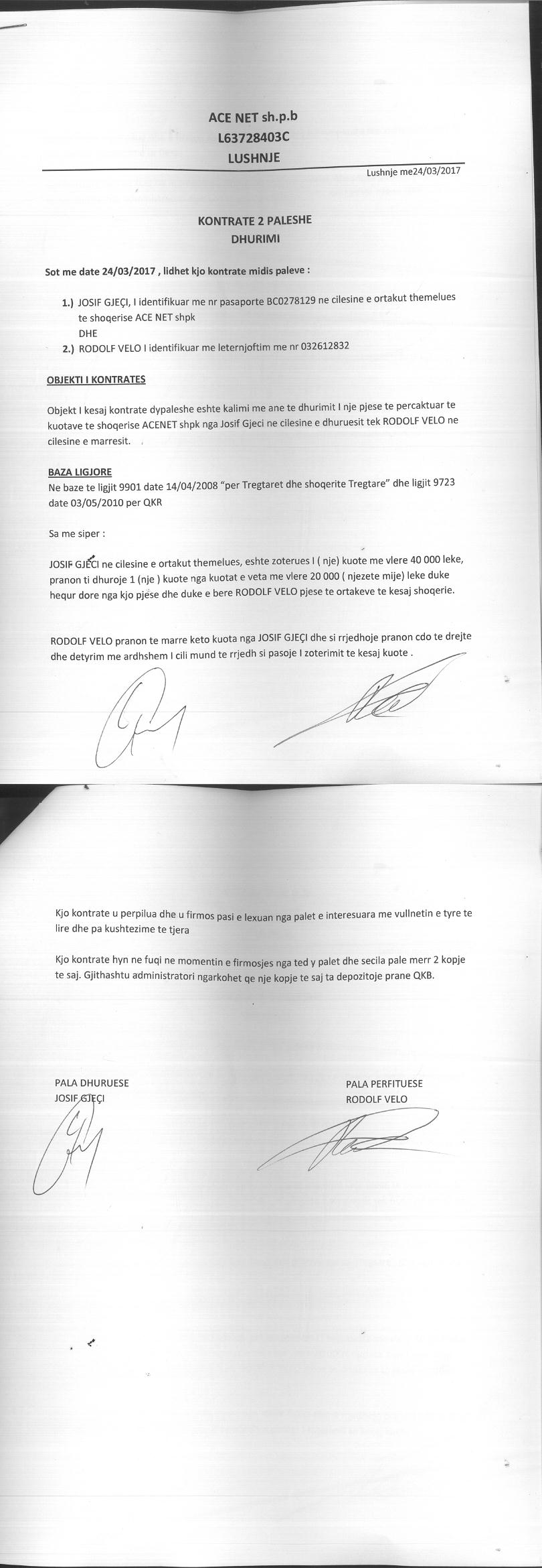 → Ekstrakt historik i regjistrit tregtar date 14.01.2023 → Akti i themelimit → Kontrate 2 paleshe dhurimi date 24.03.2017 → Kontrate date 03.03.2016 |