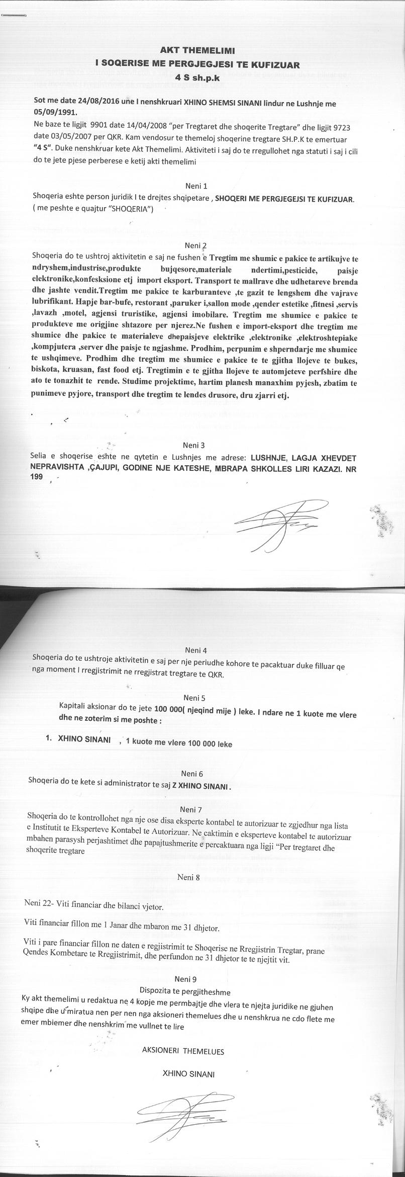 → Ekstrakt historik i regjistrit tregtar 25.10.2021 → Akti i themelimit → Ekstrakti Historik i Regjistrit Tregtar date 27.08.2024 → Ekstrakt historik i regjistrit tregtar date 29.11.2025 |