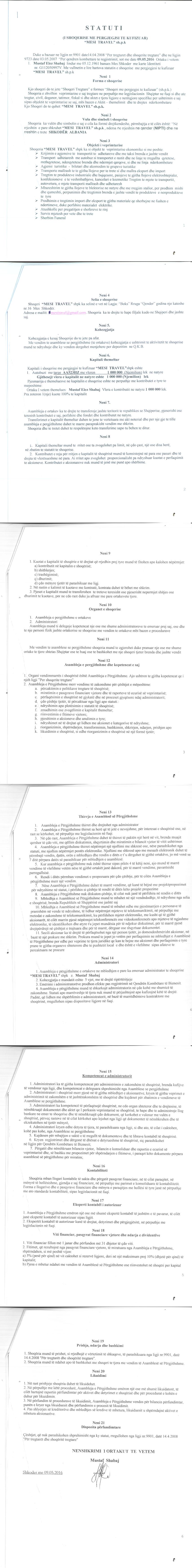 → Ekstrakt Historik i Regjistrit Tregtar, date 15.12.2021 → Statuti i shoqerise, date 9.05.2016 |