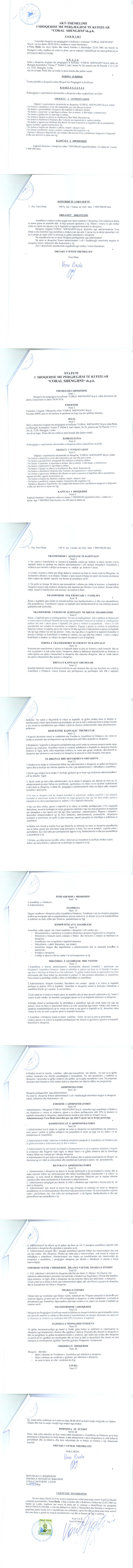 | Emërtime të tjera Tregtare: | "CORAL SHENGJINI" shp.k |