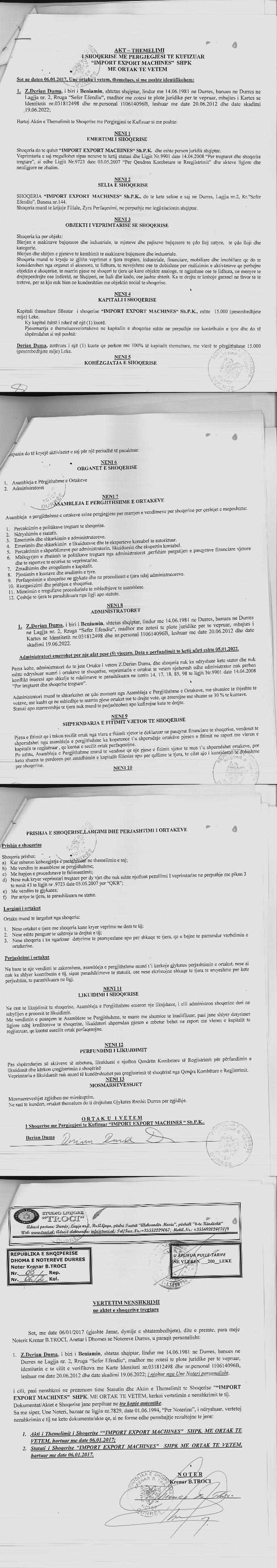 | Emërtime të tjera Tregtare: | IMPORT EXPORT MACHINES |