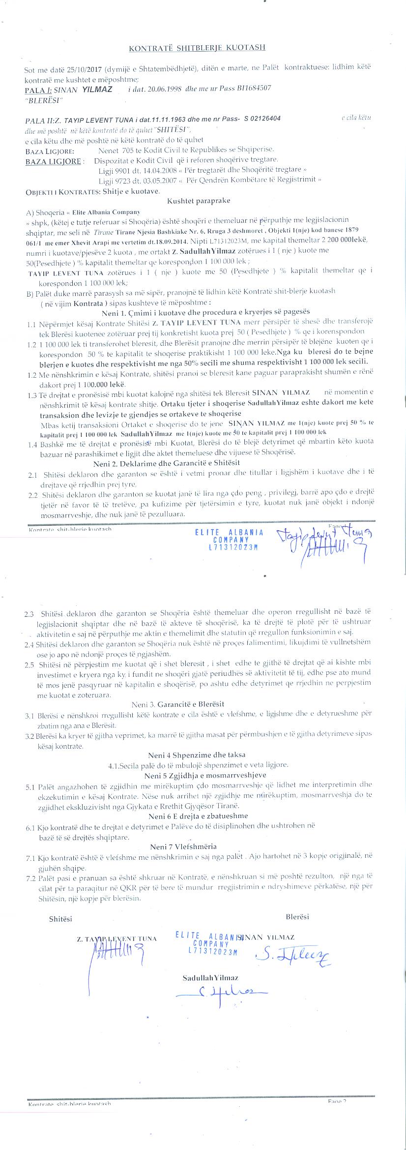 → Ekstrakti Historik i Regjistrit Tregtar date 05.01.2023 → Akt themelimi dhe Statuti i Shoqerise → Kontrate Shitblerje Kuotash date 25.10.2017 → Ekstrakti Historik i Regjistrit te Pronareve Perfitues date 05.01.2023 |