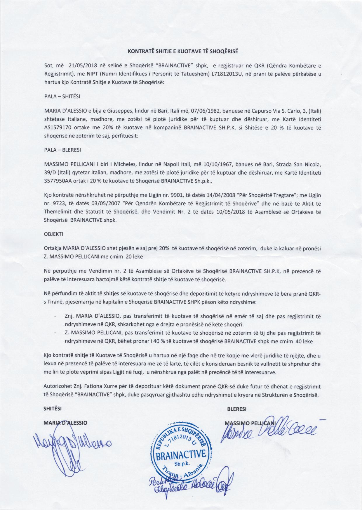 Kontratë Dhurimi Aksionesh datë 21.10.2019