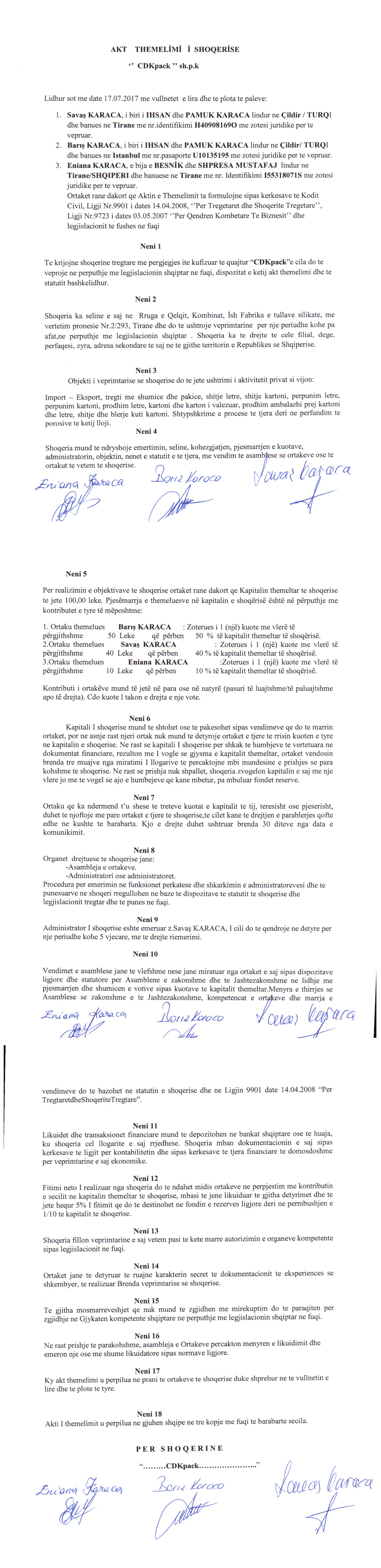 → Ekstrakt Historik i Regjistrit Tregtar, date 19.01.2023 → Akt themelimi i Shoqerise → Ekstrakt Historik i Regjistrit te Pronareve Perfitues, date 19.01.2023 |