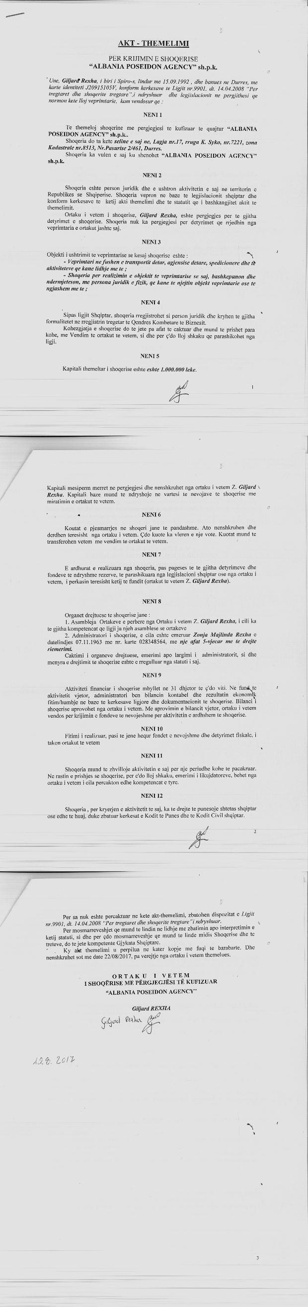 → Ekstrakt Historik i Regjistrit Tregtar date 25.10.2024 → Akt themelimi i Shoqerise → Kontrate shitke kuotash date 06.04.2021 |