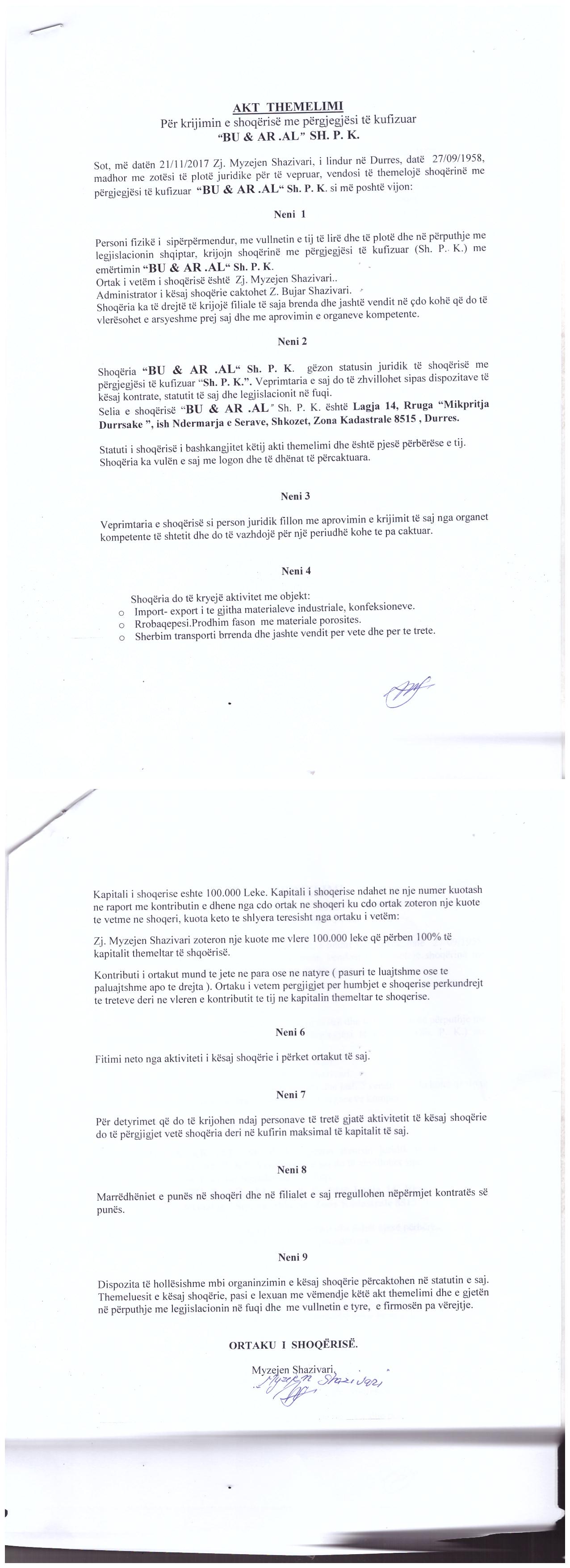 | Emërtime të tjera Tregtare: | BU & AR .AL |
