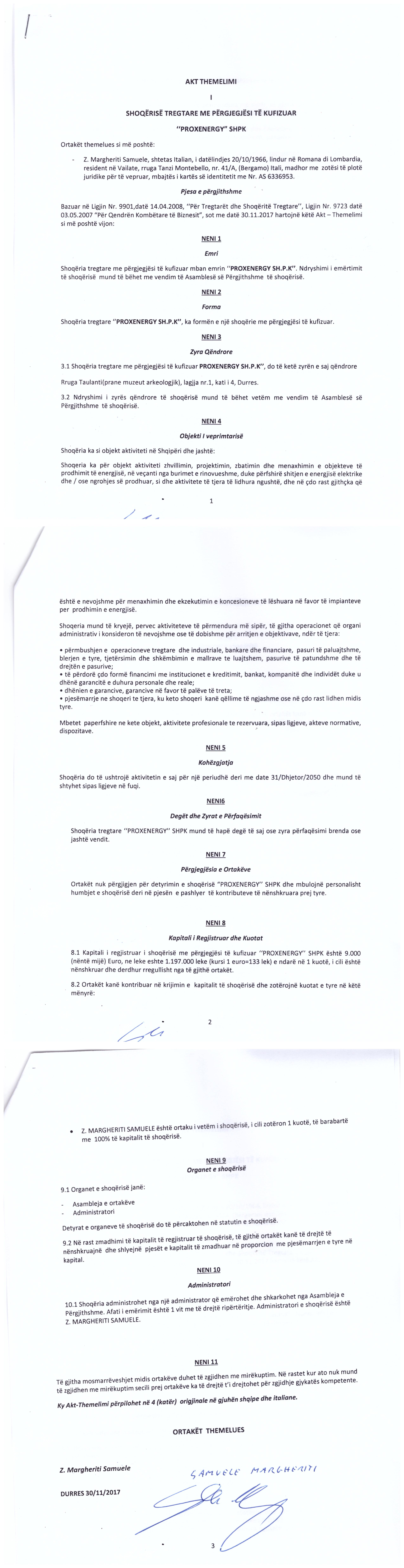 → Akti I Themelimit te Shoqerise |