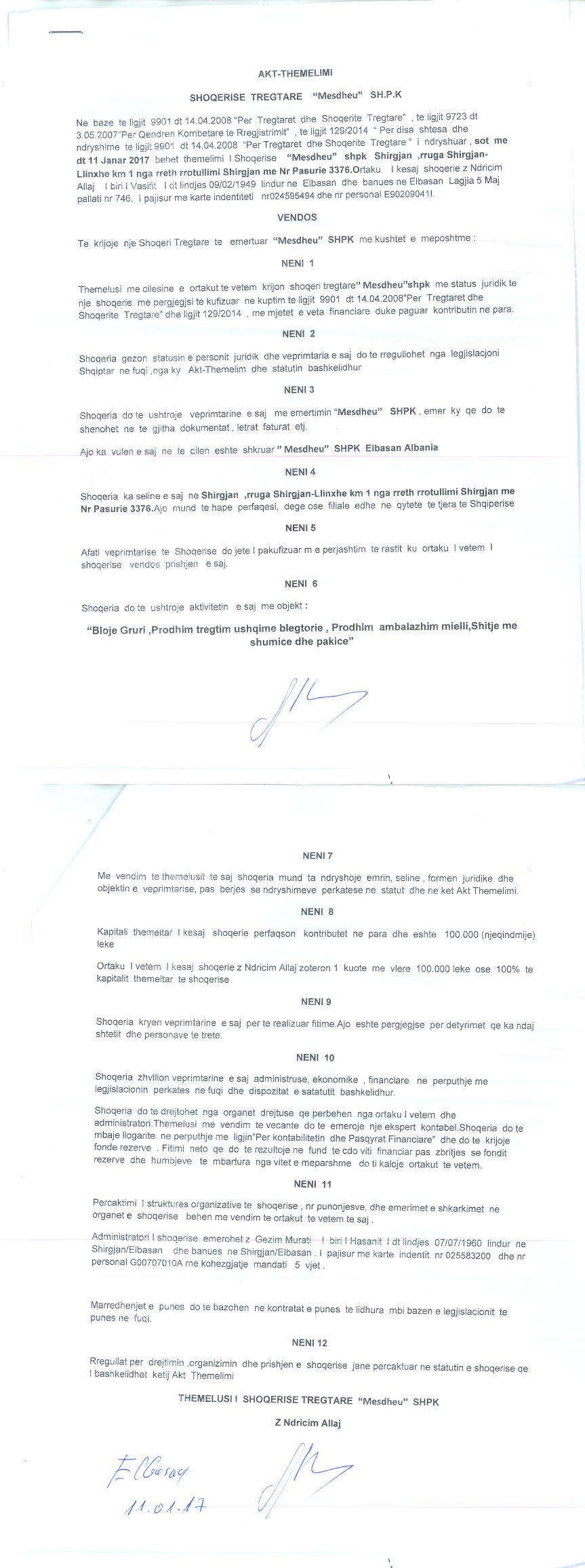 | Emërtime të tjera Tregtare: | "Mesdheu" SH.P.K |