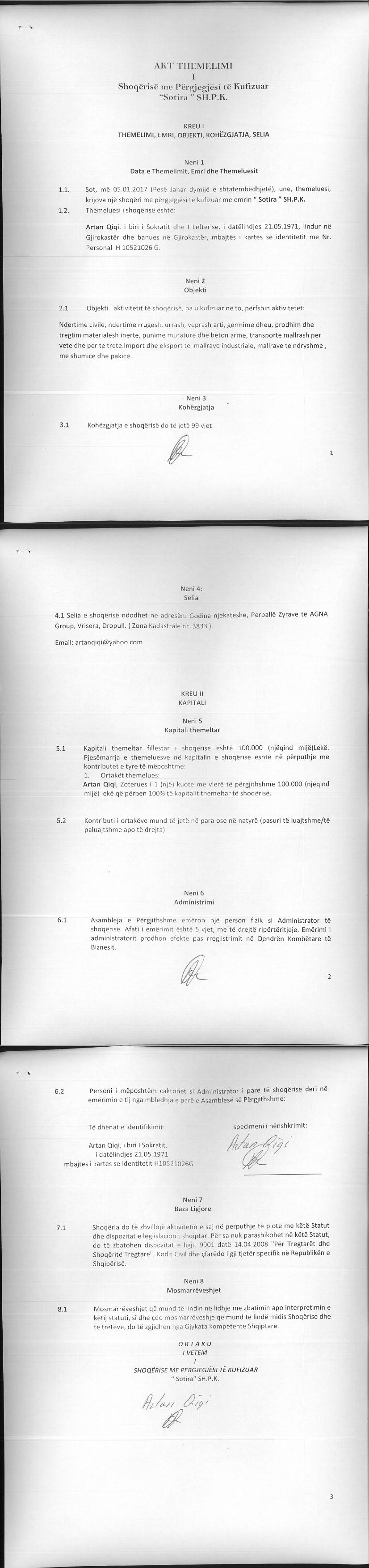 → Ekstrakti Historik i Regjistrit Tregtar date 09.01.2023 → Akt themelimi i Shoqerise |