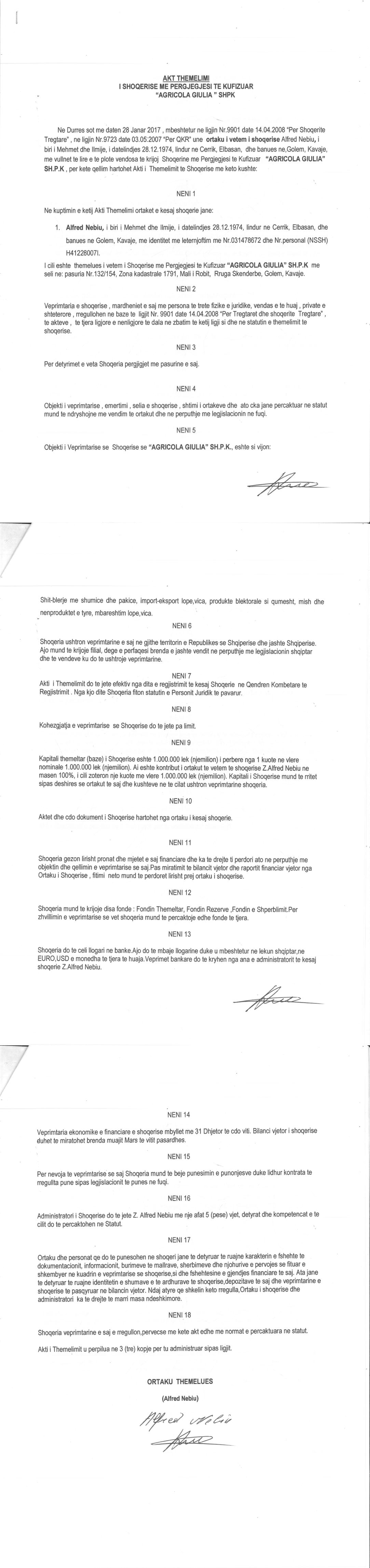 → Ekstrakti Historik i Regjistrit Tregtar date 13.01.2023 → Akt themelimi i Shoqerise → Urdher per Venie Sekuestro date 19.07.2018 |