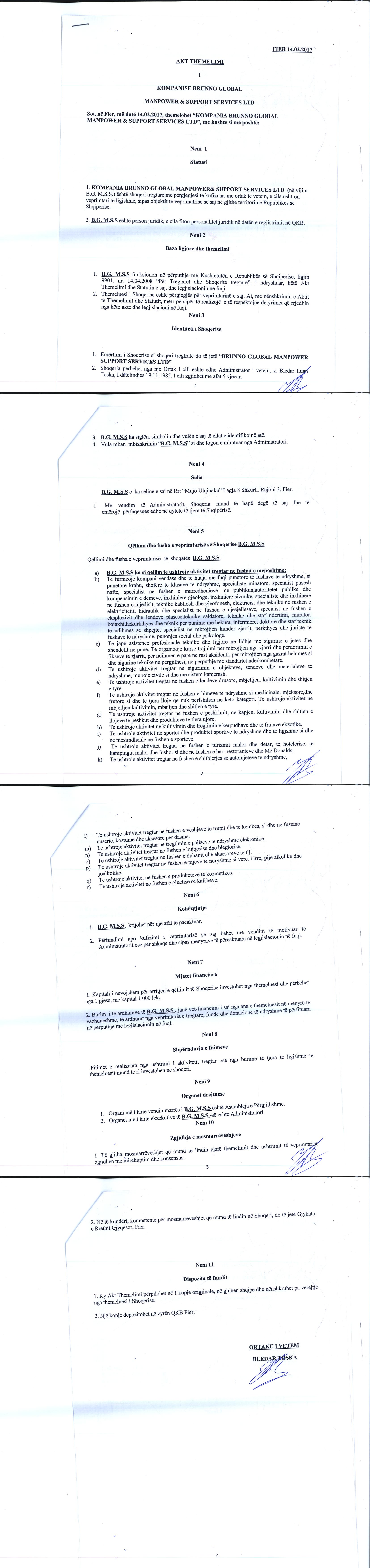 | Shënime: | Me date 06.12.2021, me vendim te ortakut te vetem te shoqerise, u emerua Drejtues Teknik Z. Bledar Toska. *Administratori dhe Drejtuesi Teknik eshte i njejte: Bledar Toska, i emeruar si drejtues teknik me date 06.12.2021. |