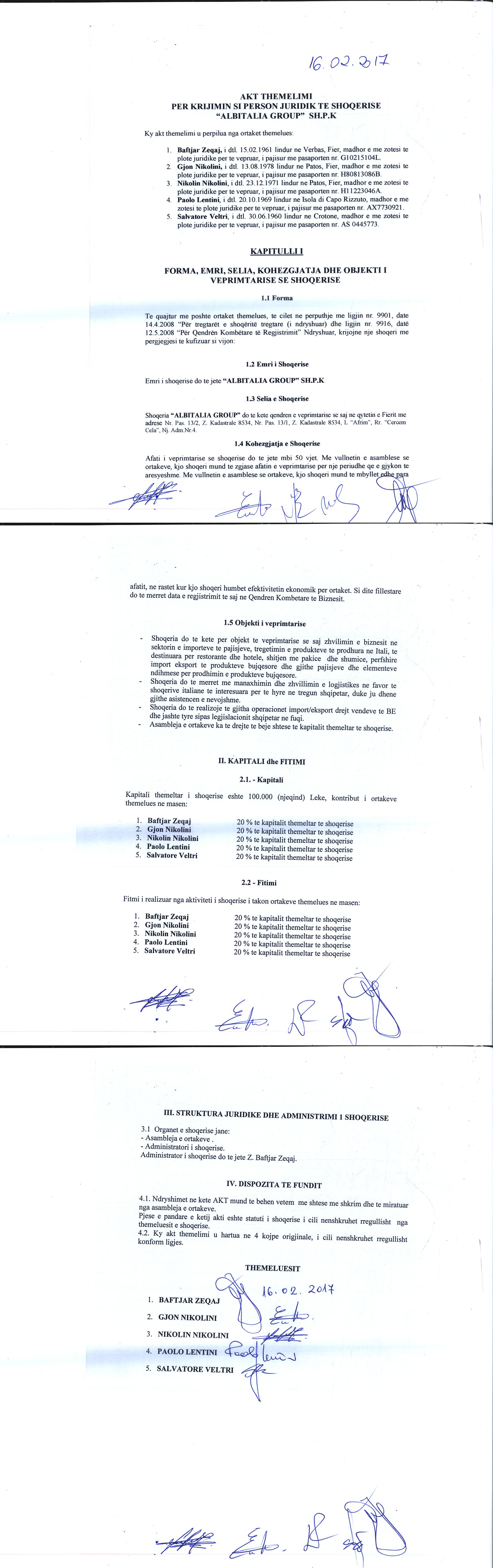| Emërtime të tjera Tregtare: | ALBITALIA GROUP SHPK |