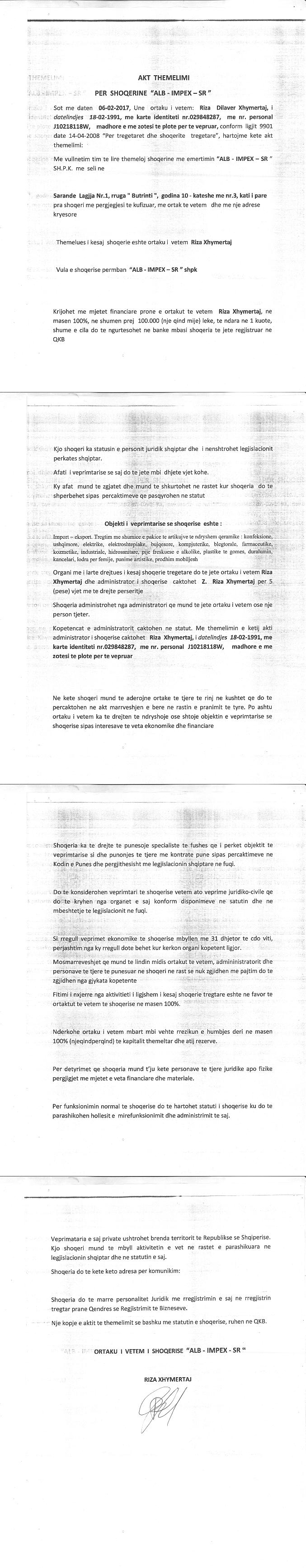 → Ekstrakti Historik i Regjistrit Tregtar date 17.01.2023 → Akt themelimi i Shoqerise → Urdher per Venie Sekuestro date 05.09.2022 |