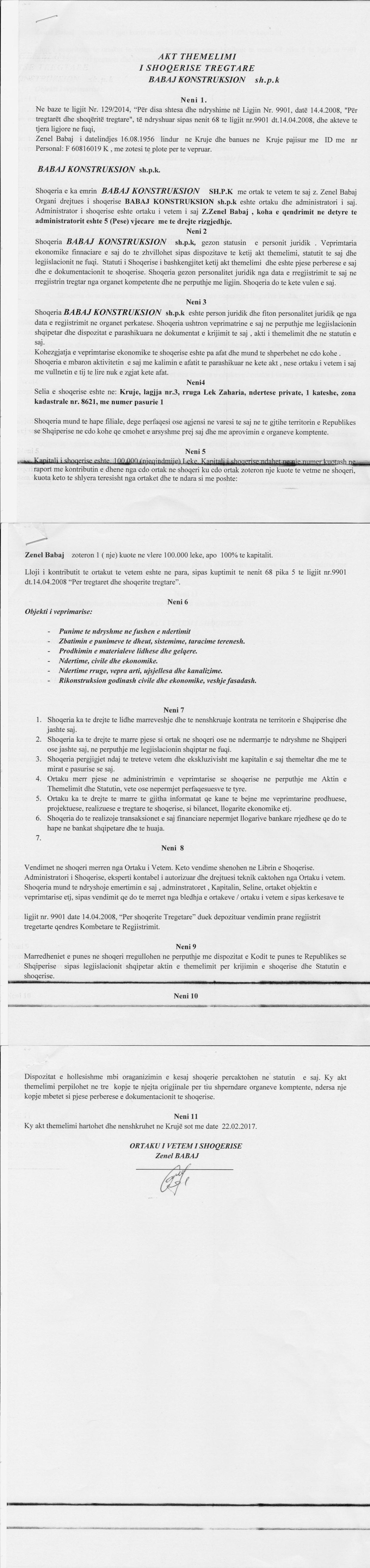 | Emërtime të tjera Tregtare: | BABAJ KONSTRUKSION |