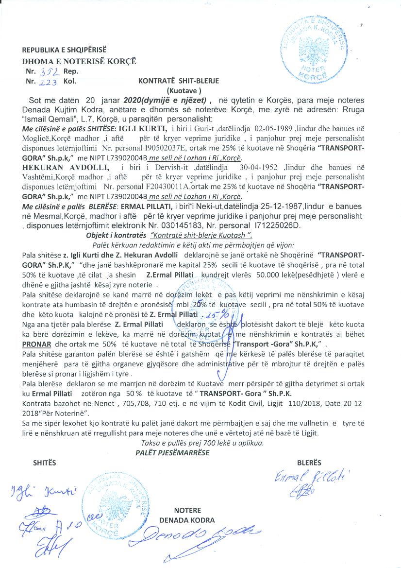→ Ekstrakt Historik i Regjistrit Tregtar date 12.05.2023 → Statuti i Shoqerise → Kontrate Shitblerje Kuotash date 20.01.2020 |