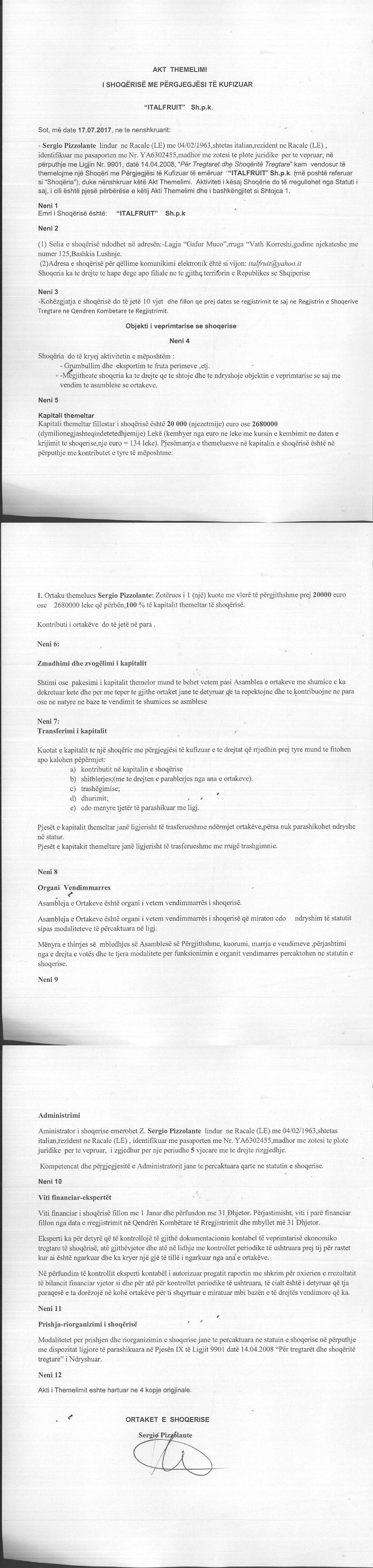 → Ekstrakt Historik i Regjistrit Tregtar, date 18.01.2023 → Akt themelimi i Shoqerise → Ekstrakt Historik i Regjistrit te Pronareve Perfitues, date 18.01.2023 |