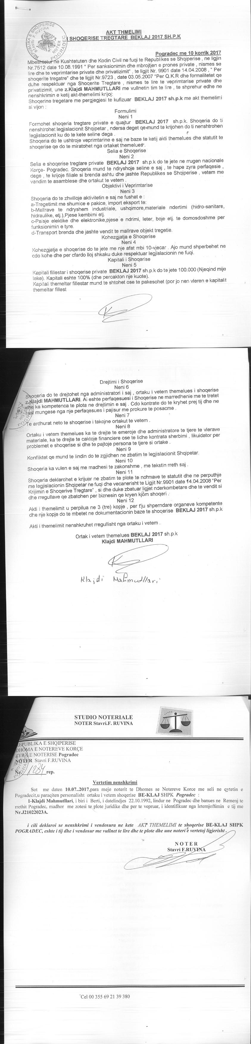 → Ekstrakt Historik i Regjistrit Tregtar, date 19.01.2023 → Akt themelimi i Shoqerise |