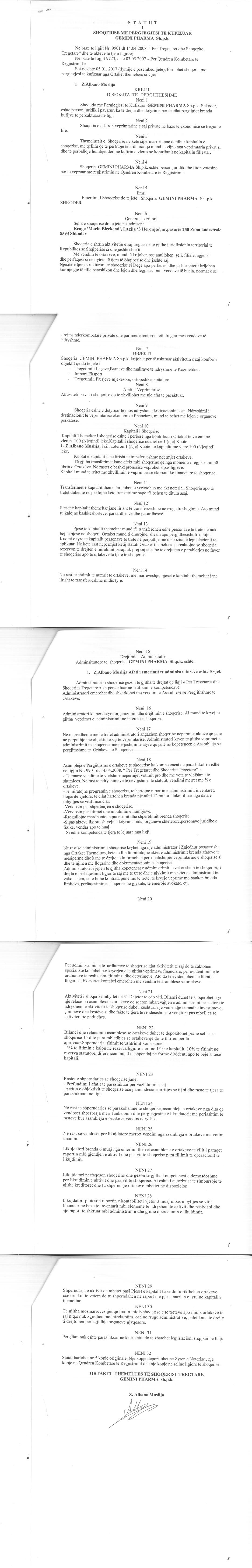 → Ekstrakti Historik i Regjistrit Tregtar date 04.01.2023 → Statuti i Shoqerise |