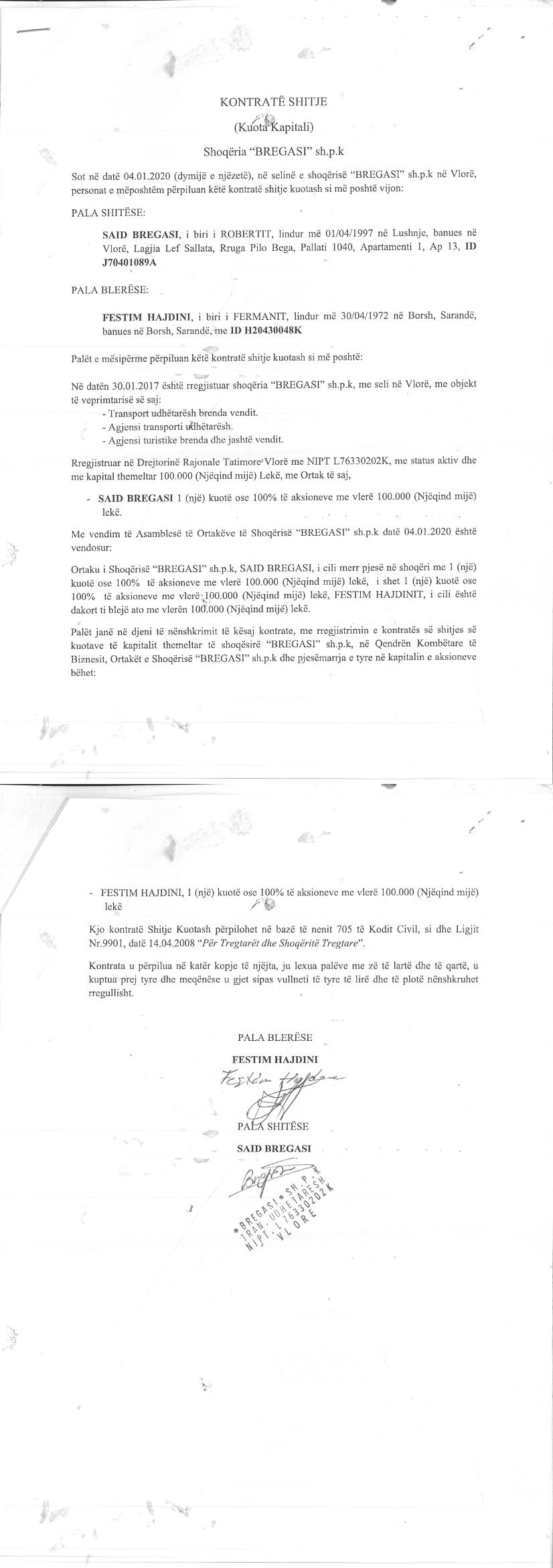 → Ekstrakti Historik i Regjistrit Tregtar date 13.01.2023 → Statuti i Shoqerise → Kontrate Shitje Kuotash date 20.08.2018 → Kontrate Shitje Kuotash date 04.01.2020 |
