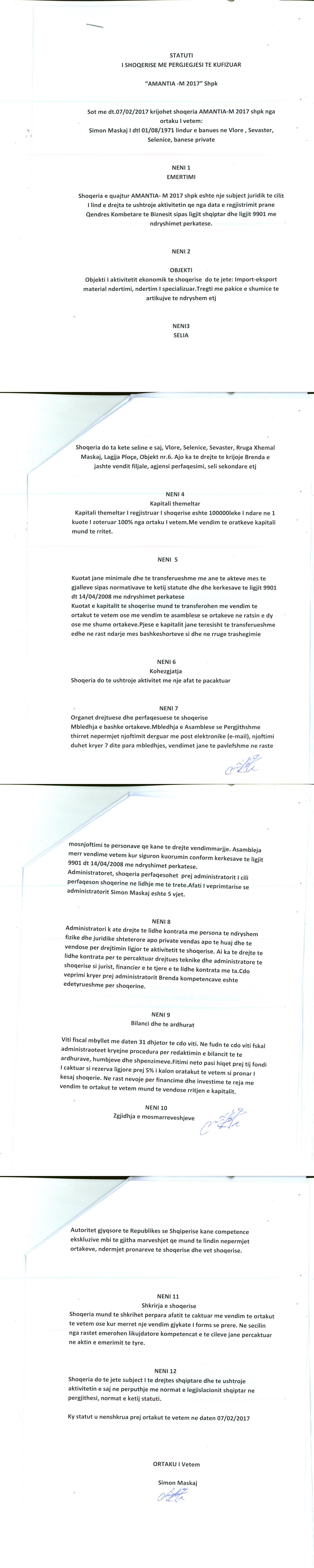 → Ekstrakti Historik i Regjistrit Tregtar date 18.01.2023 → Statuti i Shoqerise |