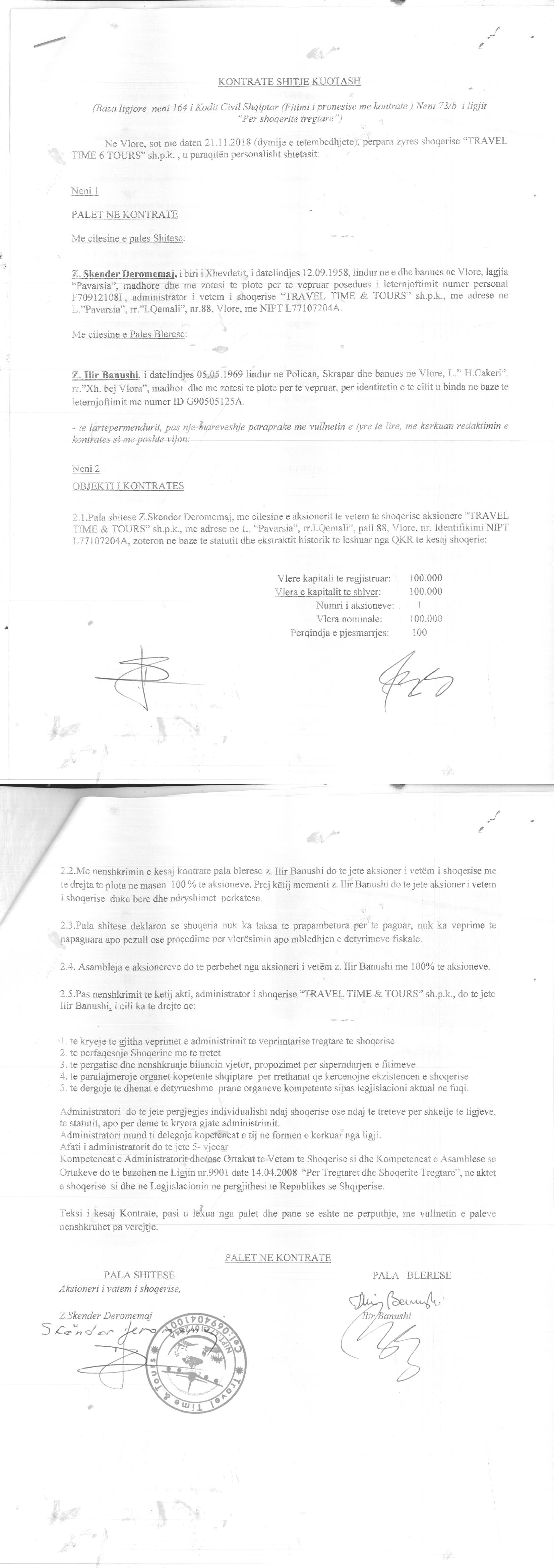 → Ekstrakt historik i regjistrit tregtar 07.02.2022 → Akti I themelimit → Kontrate shitje kuotash 21.11.2018 |