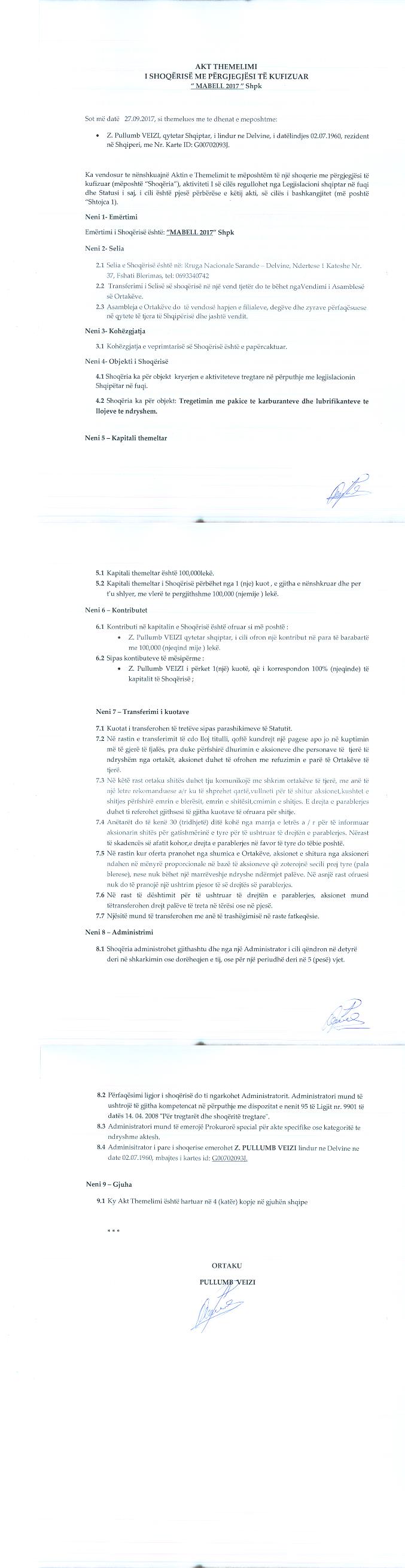 → Ekstrakt Historik i Regjistrit Tregtar date 11.10.2024 → Akt themelimi i Shoqerise |