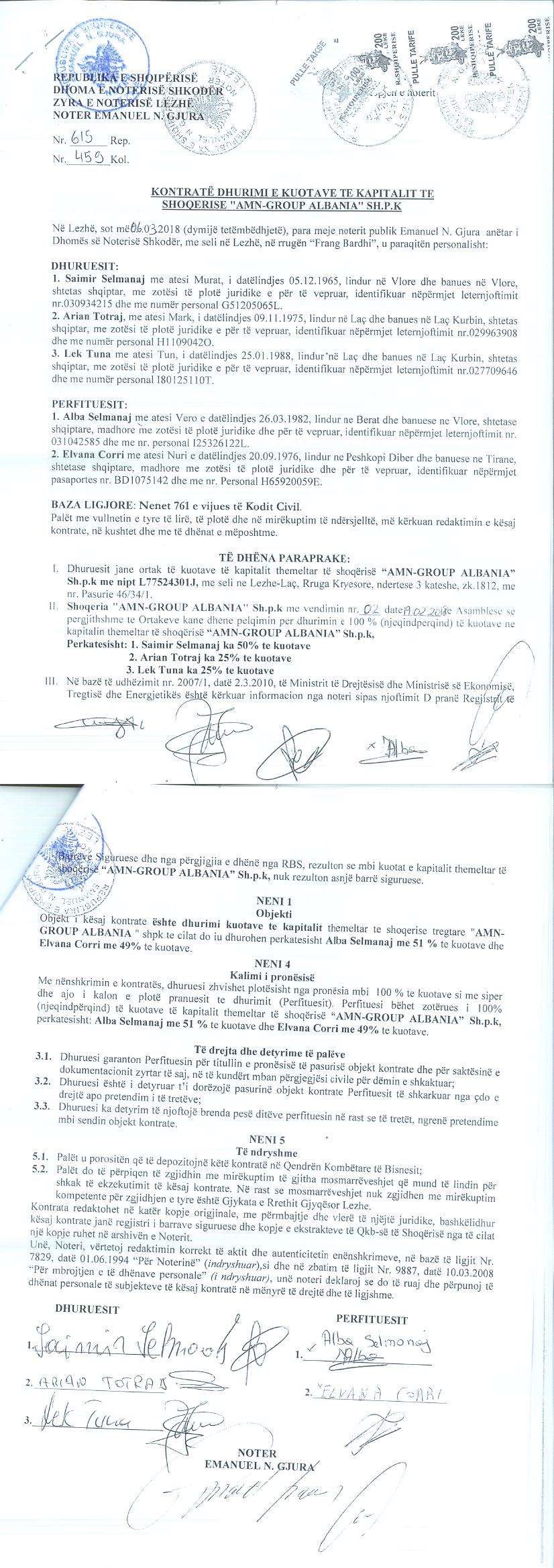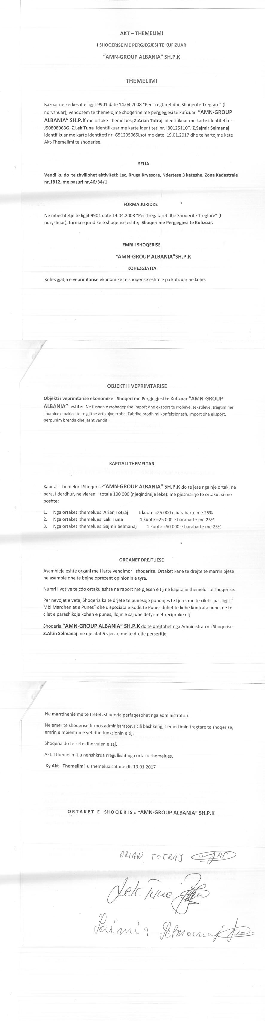 | Emërtime të tjera Tregtare: | AMN-GROUP ALBANIA |