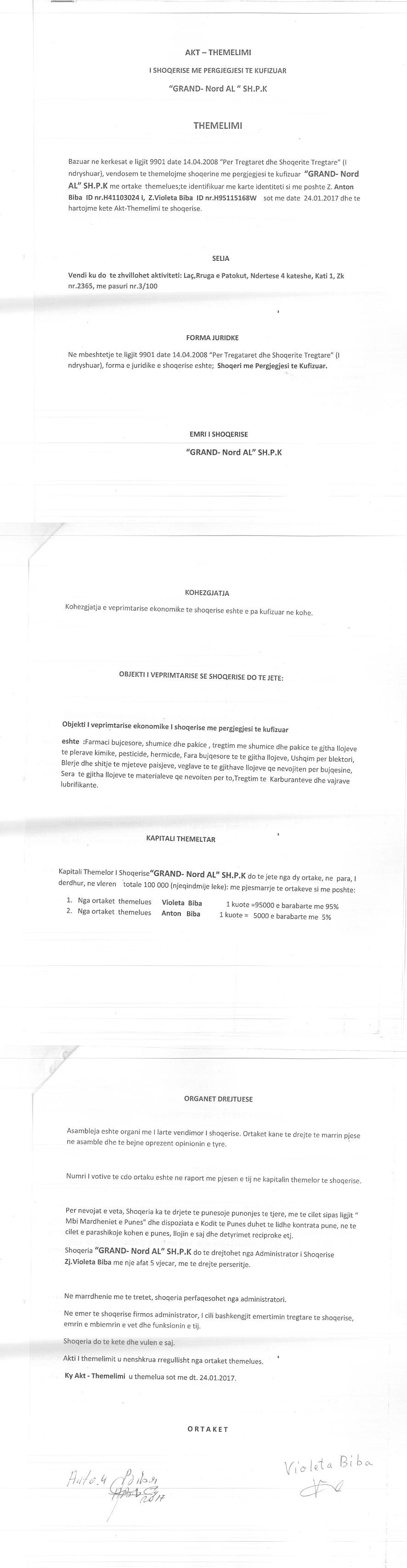 | Emërtime të tjera Tregtare: | GRAND-Nord AL |